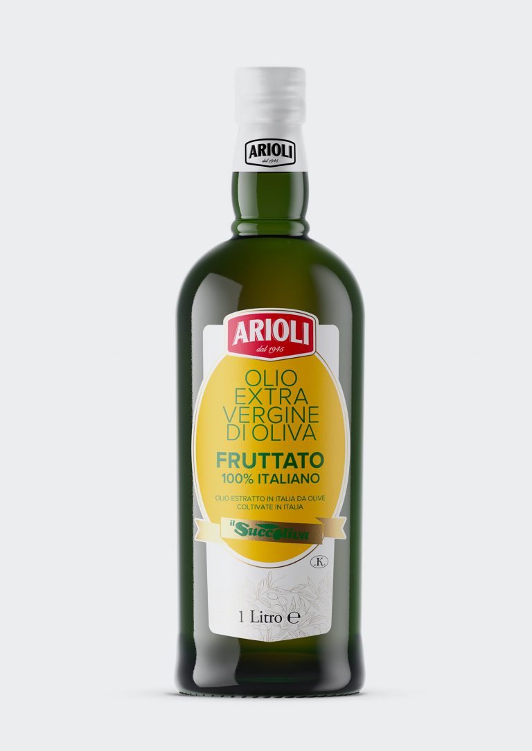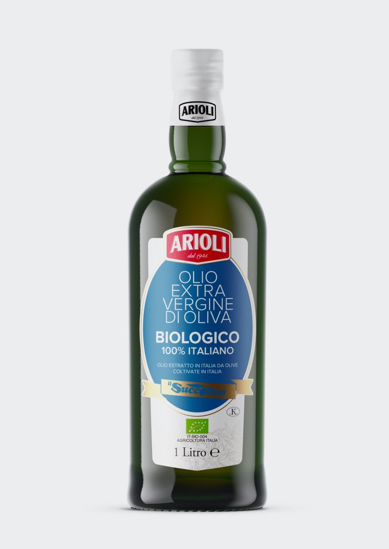 Frutto di una sapiente selezione di oli, l'Extra Vergine 100% Italiano orgoglio della famiglia Arioli, è confezionato nella bottiglia di vetro scuro 1 litro, in assenza di ossigeno, per conservare al meglio le sue eccellenti qualità organolettiche.